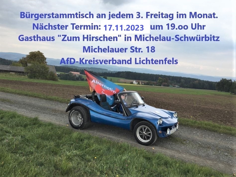 unser nächster Bürgerstammtisch findet am Freitag, den 17.11.2023 um 19.oo Uhr im Gasthaus zum Hirschen in Michelau-Schwürbitz statt.